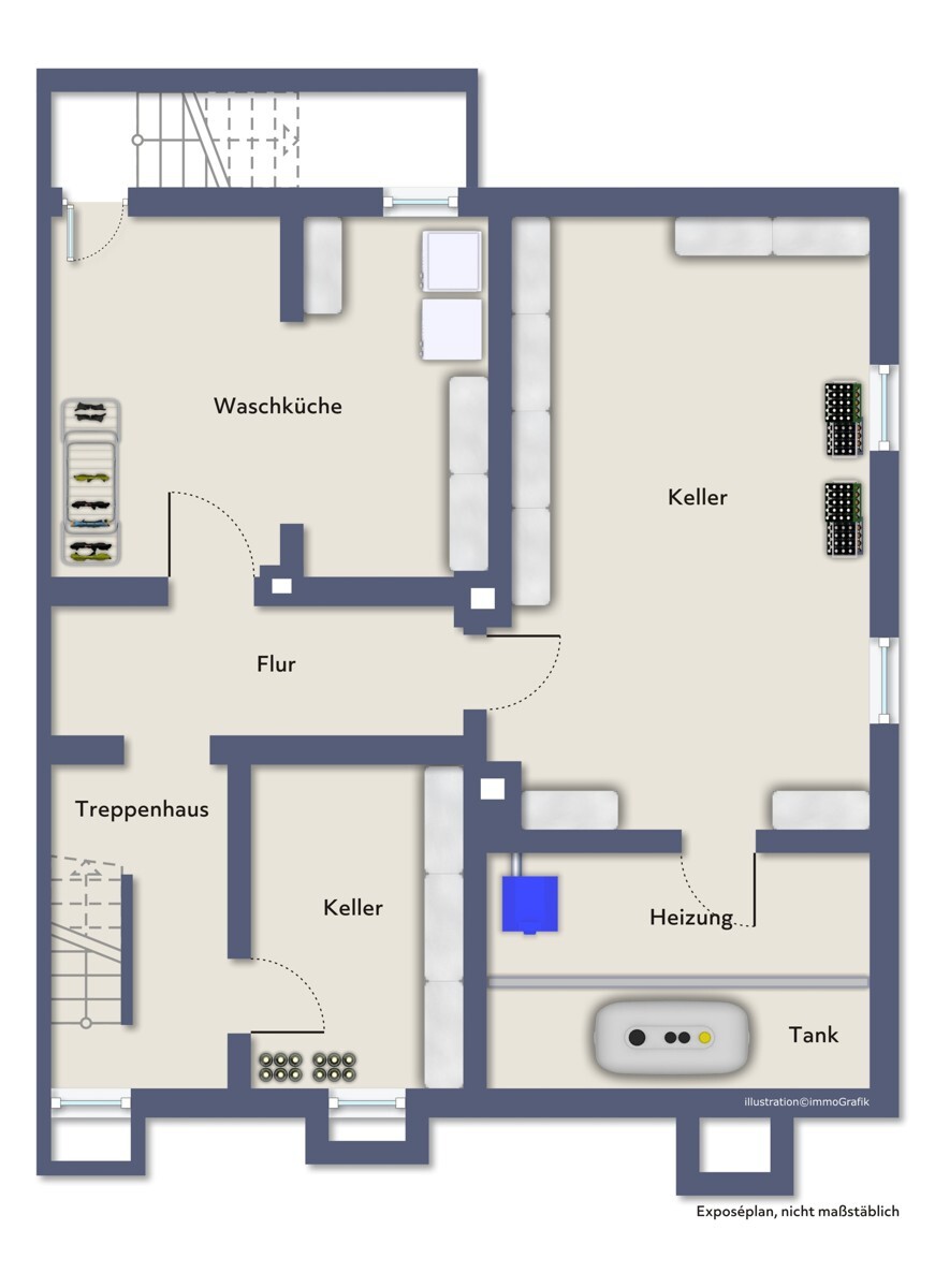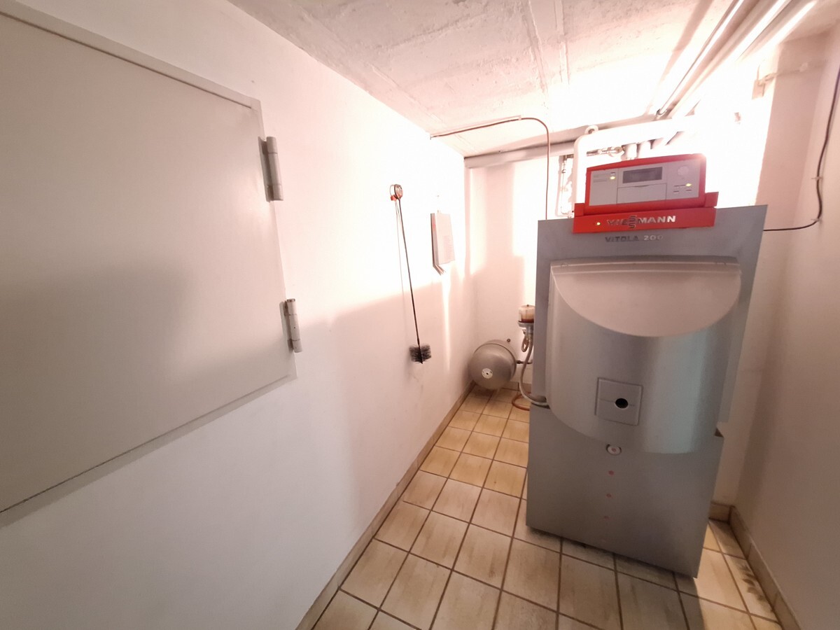 Zusätzlichen Stauraum bietet das Dachgeschoss. Der voll unterkellerte Bereich schafft weitere Nutzungsmöglichkeiten: Neben einem großen Hobbyraum gibt es eine Waschküche mit direktem Zugang zum Garten über eine Außentreppe sowie den Heizungsraum mit der Ölzentralheizung aus dem Jahr 2004.