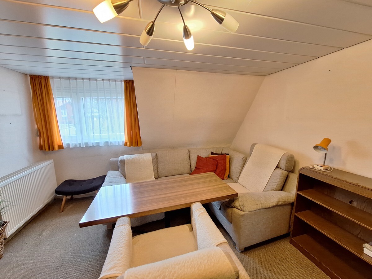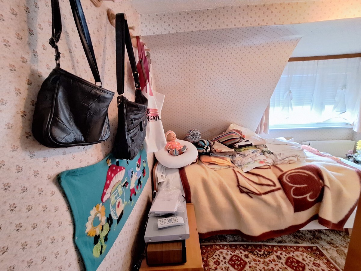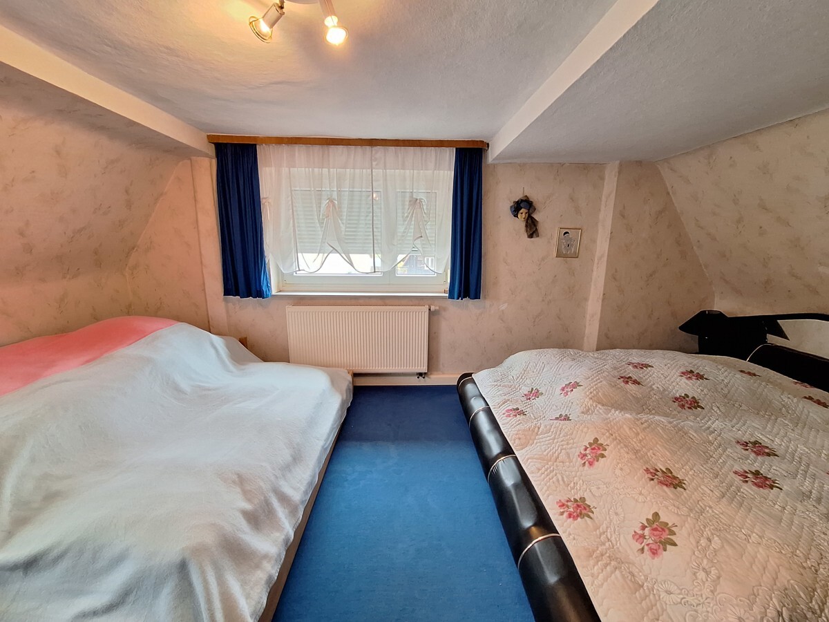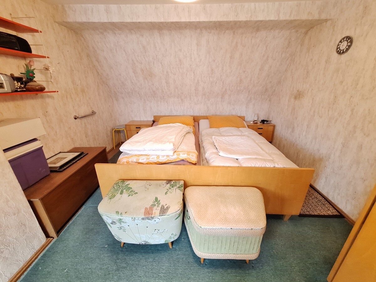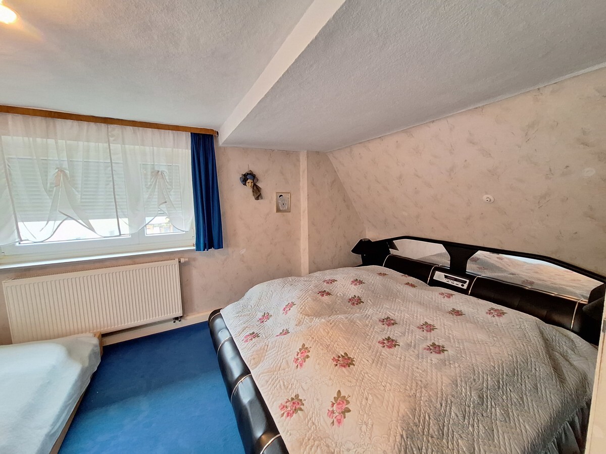 Im Dachgeschoss befinden sich drei weitere Zimmer. Ein großes Elternschlafzimmer (ca. 16,4 m²), ein Wohnzimmer (ca. 14,0 m²), worüber ein weiteres Schlafzimmer erreichbar ist mit ca. 14,8 m². Zusätzlich gibt es noch ein Arbeits-, Gäste- oder Kinderzimmer mit fast 6,0 m². Die Deckenhöhe im DG liegt bei etwa 2,00 m