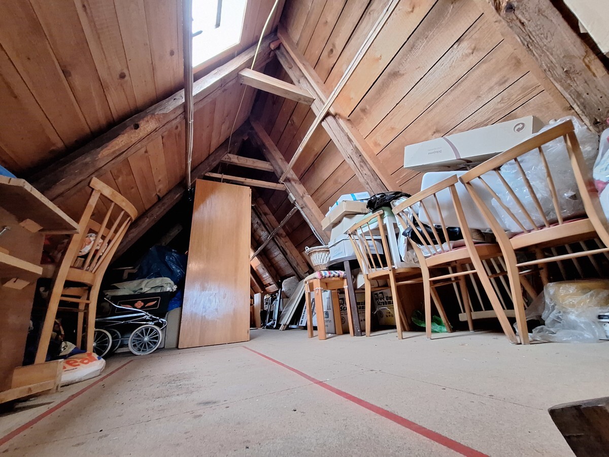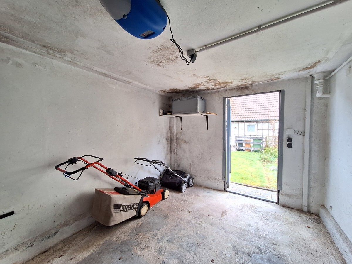 Zusätzlich gibt es eine Garage mit Zugang in den Garten und ein Nebengebäude, das Platz für eine Werkstatt und für Gartengeräte oder Fahrräder bietet.
