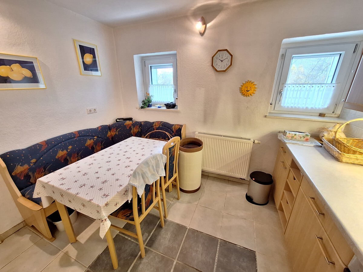 Im Erdgeschoss gibt es neben einem Wohnzimmer (ca. 13,5 m²) ein Arbeits-, Gäste- oder Kinderzimmer (ca. 8,0 m²), eine Speisekammer, ein Gäste-WC mit Fenster, ein Tageslichtbad mit Fenster, Badewanne, WC und Waschtisch sowie eine Küche. Zusätzlich gibt es eine weitere kleine Küche. Das Haus hat auch einen kleinen Gewölbekeller, der sich zum Lagern von Kartoffeln oder Ähnlichem eignet. Zusätzlich verfügt er über einem kleinen Brunnen.