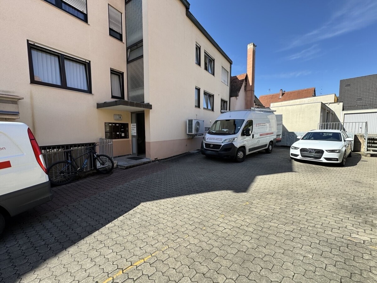 Die Gewerbeeinheit bietet zusätzlich zwei Außenstellplätze und eine Garage, die optional dazu gemietet werden können perfekt für die bequeme Anfahrt für Mitarbeiter oder Kunden. Zudem gibt es zwei Hintereingänge über das Treppenhaus.