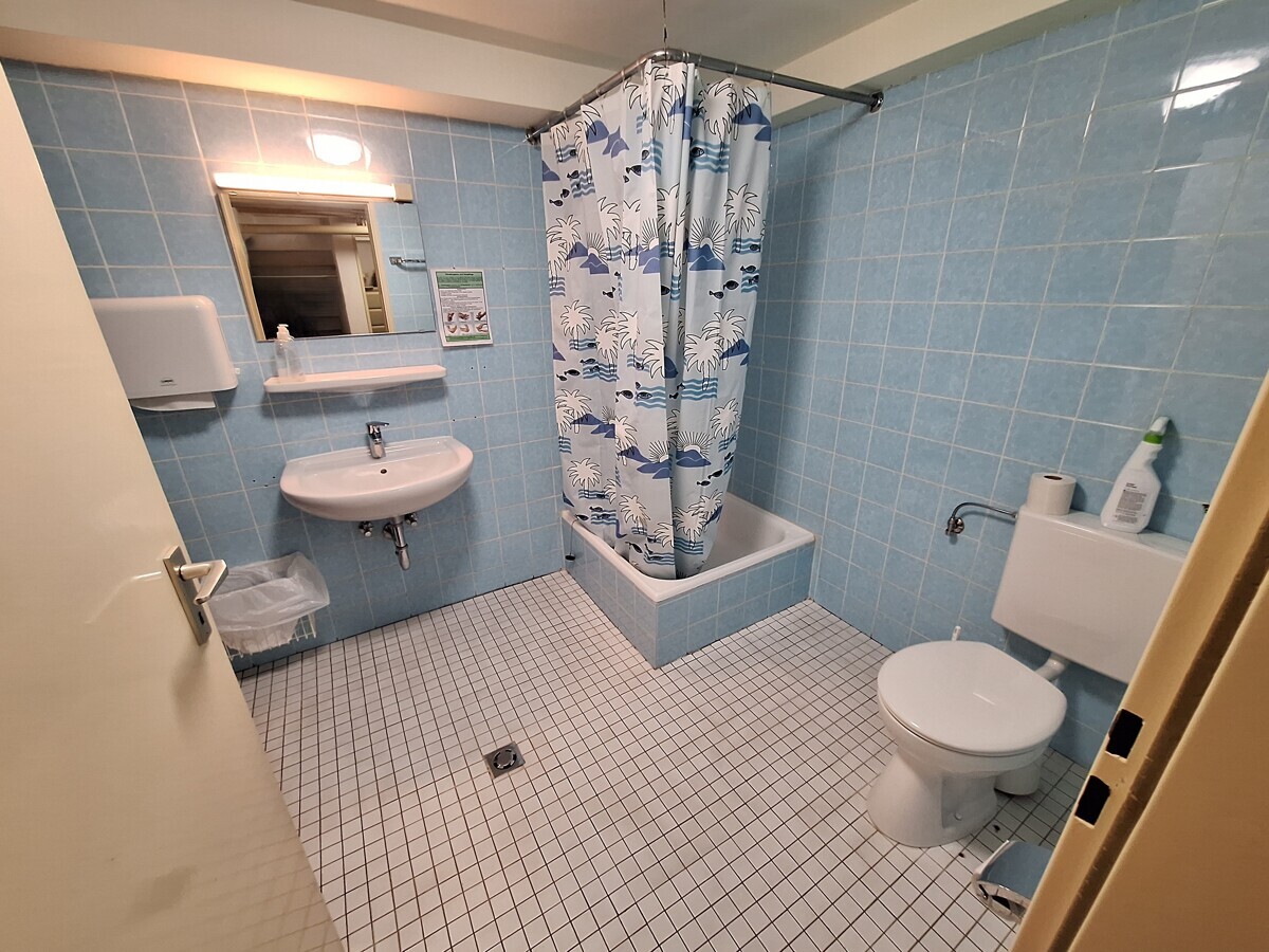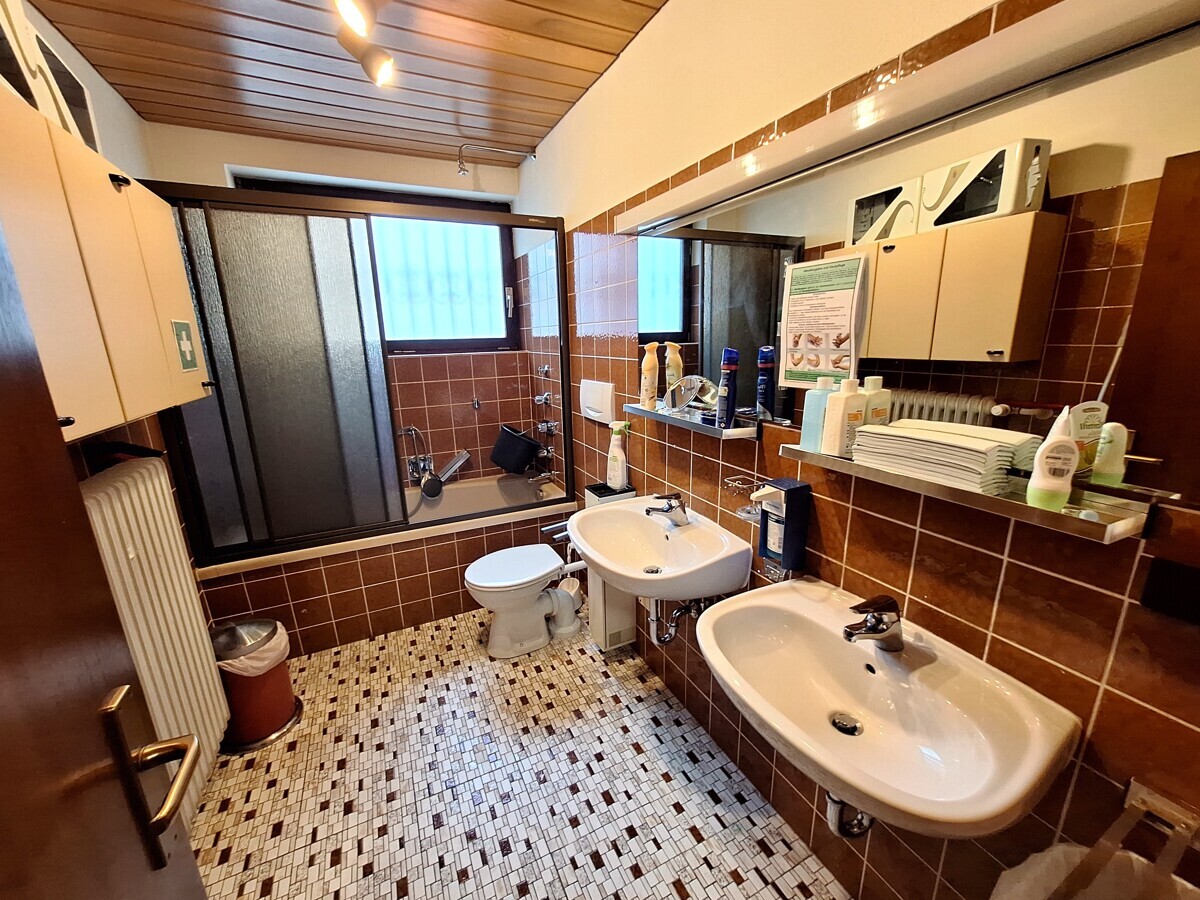 Zur rechten finden Sie das Gäste-WC sowie das Badezimmer vor.