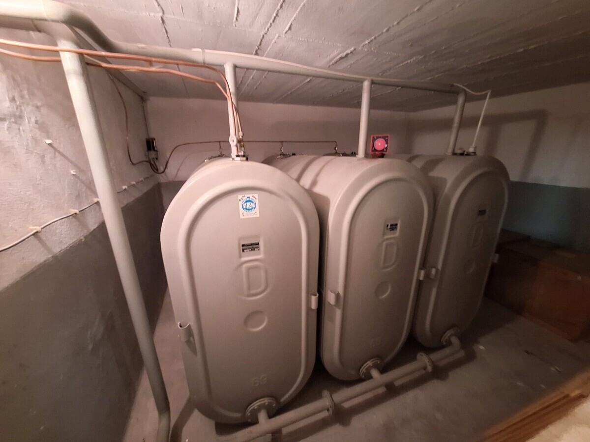 Im Keller befinden sich mehrere Abstellräume, ein weiteres Badezimmer, die Heizung und die Öltanks. Eine Treppe führt direkt vom Keller in den Garten.