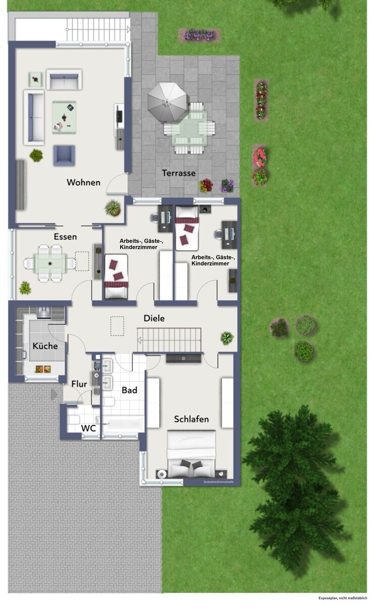 Im Erdgeschoss stehen Ihnen ca. 125 m² Wohnfläche zzgl. der Terrasse zur Verfügung.