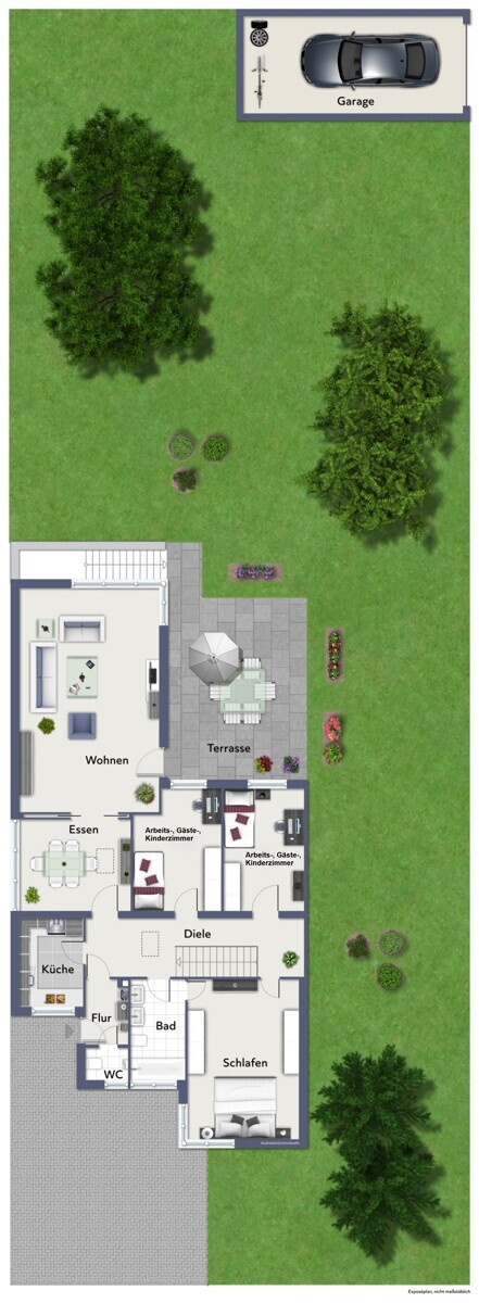 Zusätzlich gehört eine Garage zum Haus.