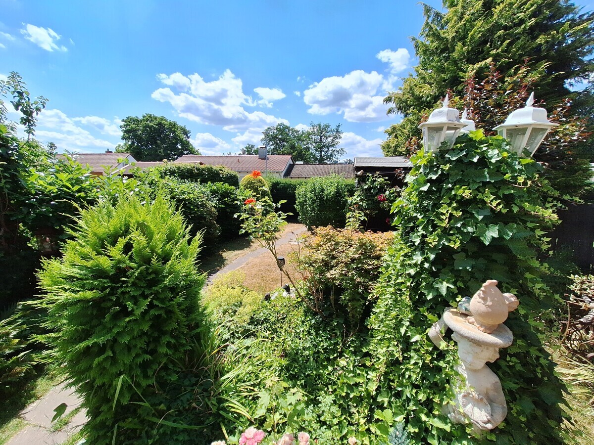 Zum Haus gehört eine separate Garage, die sich in fußläufiger Nähe befindet und sowohl Platz für ein Fahrzeug als auch Stauraum bietet. Die Außenanlagen sind pflegeleicht gestaltet, was insbesondere für Berufstätige oder kleine Familien von Vorteil ist.