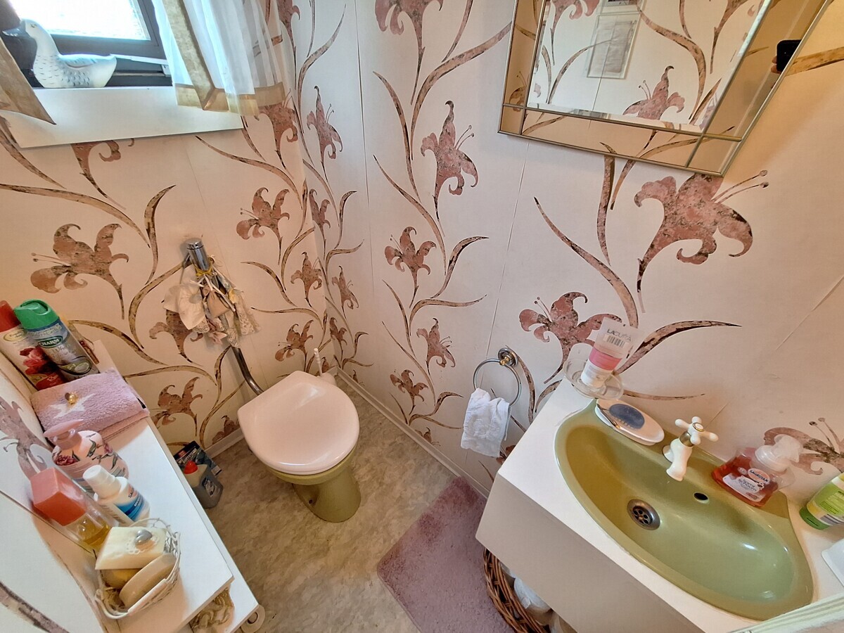 Das Gebäude wurde in massiver Bauweise errichtet. Der Eingangsbereich führt in das Erdgeschoss. Hier befinden sich im Eingangsbereich neben der Garderobe das Gäste-WC sowie die Küche. Über den Eingangsbereich und die Küche kommt man in das gut geschnittene Wohnzimmer mit Essbereich. Vom Wohnzimmer aus kommt man in den schönen und idyllischen Garten mit West-Ausrichtung.