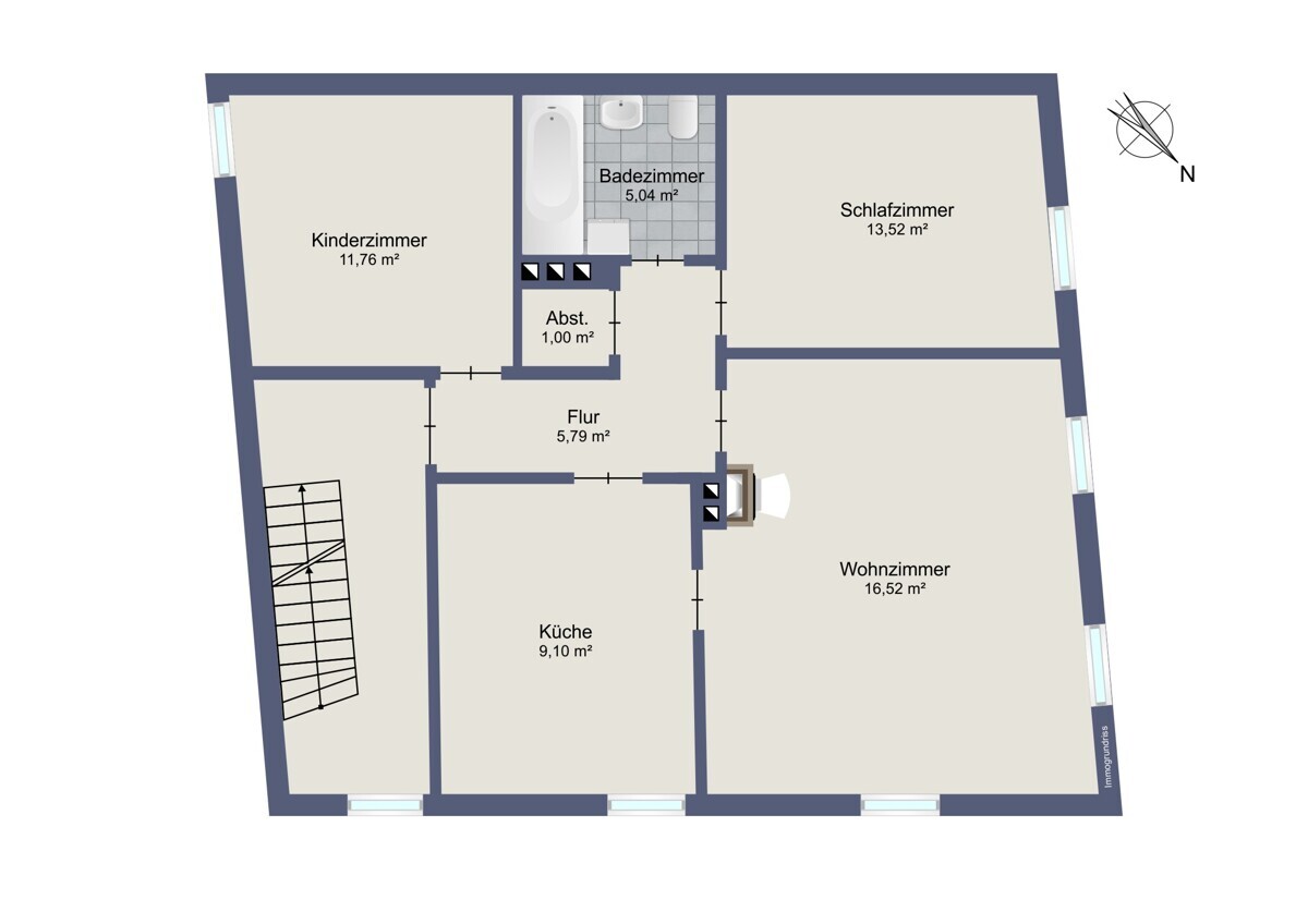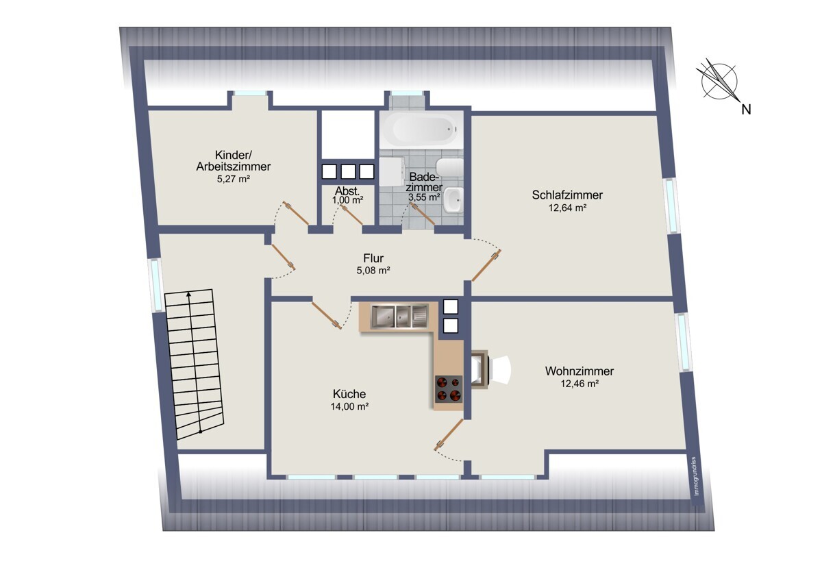 Die Wohnung im Dachgeschoss ist derzeit noch vermietet, wird jedoch bis Ende 2026 frei. Auch hier eröffnet sich langfristig zusätzliche Flexibilität sei es für eine Neuvermietung, eine Anpassung der Mietstruktur oder für eine spätere Eigennutzung.