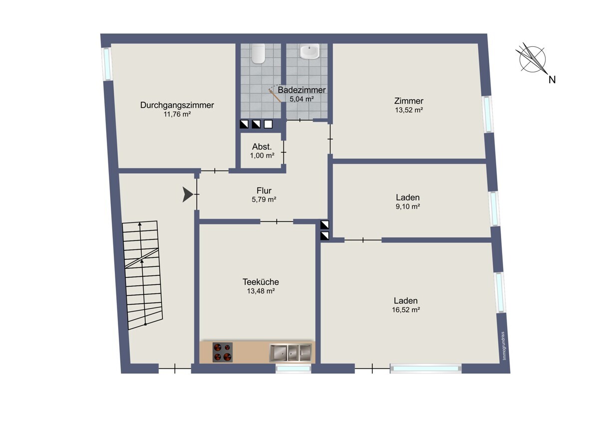 EG links (gewerblich genutzt): ca. 44,82 m² (vermietet)