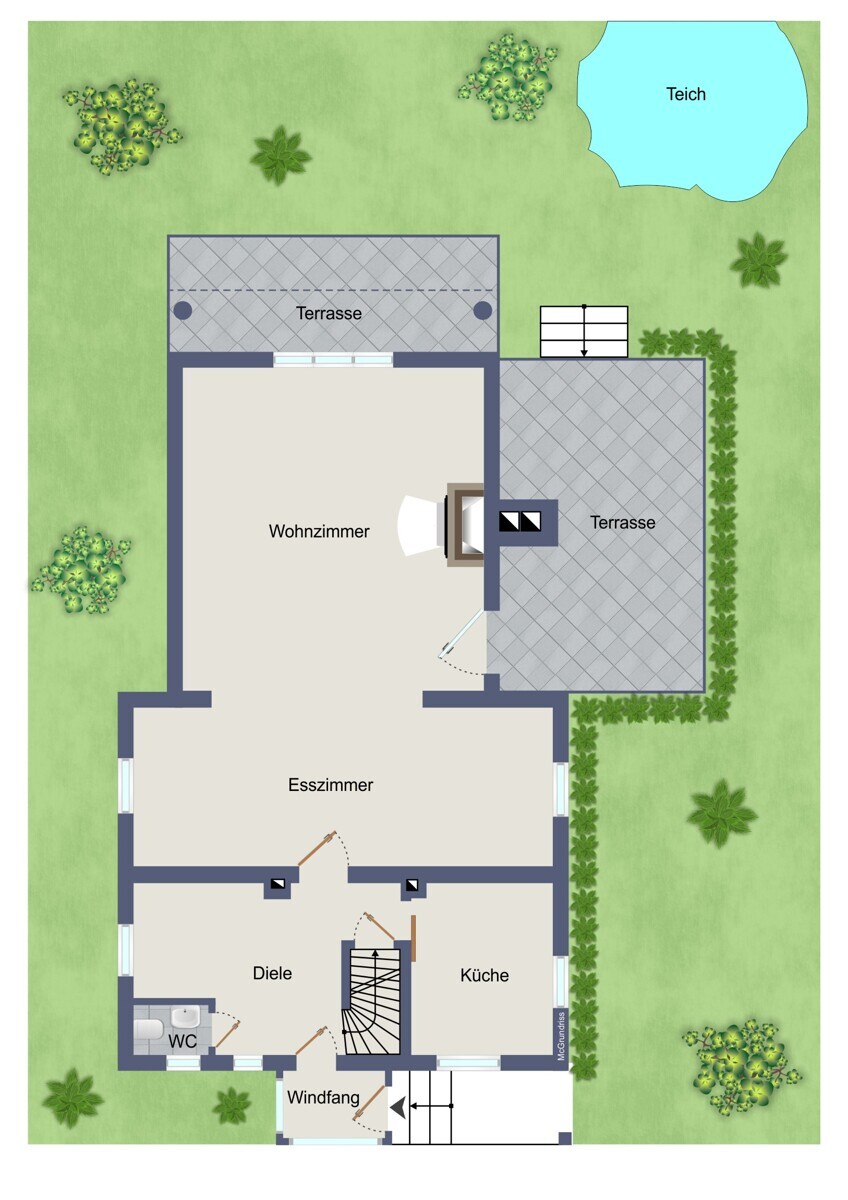 Zusätzlich ist im EG im Wohnzimmer und im Gäste-WC eine Fußbodenheizung vorhanden.