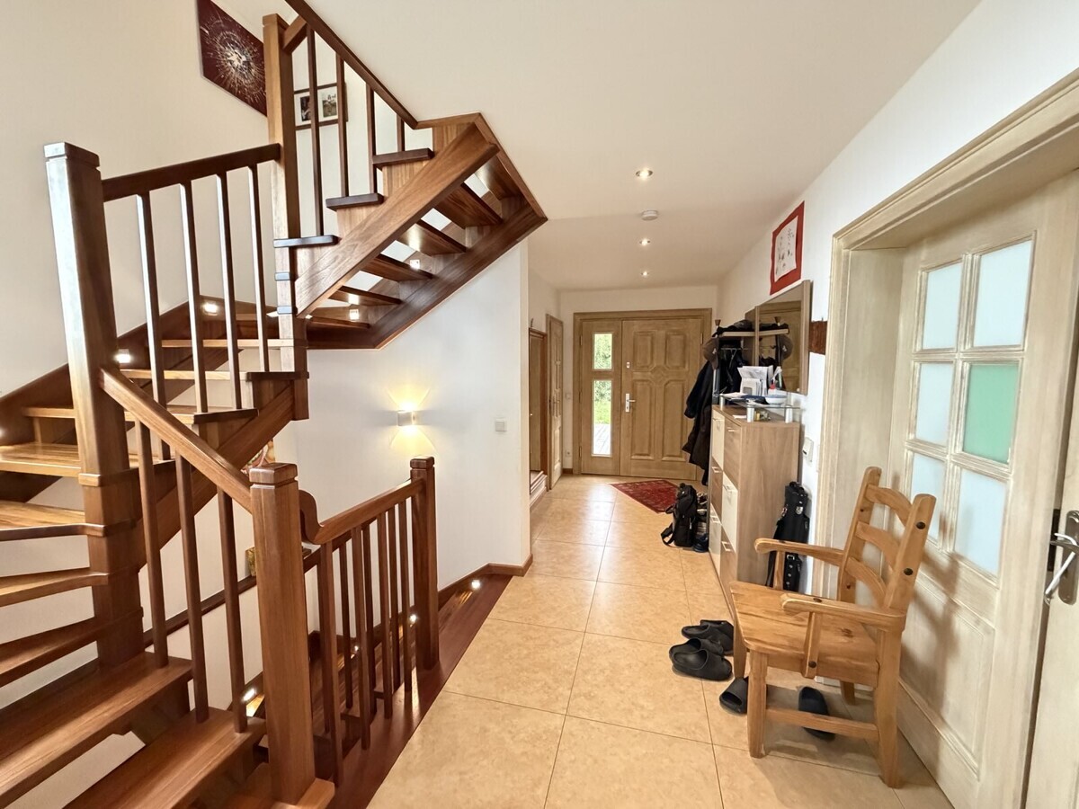 Mit einer Wohnfläche von rund 120 m² sowie einer zusätzlichen Nutzfläche von ca. 61 m² bietet die Immobilie reichlich Platz für individuelles Wohnen und vielfältige Nutzungsmöglichkeiten. Bereits beim Betreten des Hauses empfängt Sie ein freundlicher Eingangsbereich mit Zugang zu allen Räumen des Erdgeschosses. Das großzügige Wohn- und Esszimmer bildet das Herzstück der Immobilie.