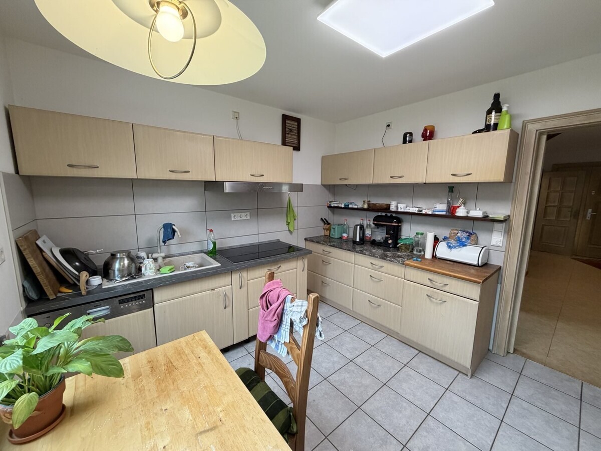 Große Fensterflächen sorgen für ein helles und freundliches Ambiente und eröffnen den direkten Zugang zur sonnigen Terrasse sowie in den gepflegten Garten. Die angrenzende Küche ist funktional geschnitten und bietet ausreichend Platz für eine moderne Einbauküche sowie einen kleinen Essbereich. Ein Gäste-WC und ein praktischer Abstellraum runden das Raumangebot auf dieser Ebene ab.