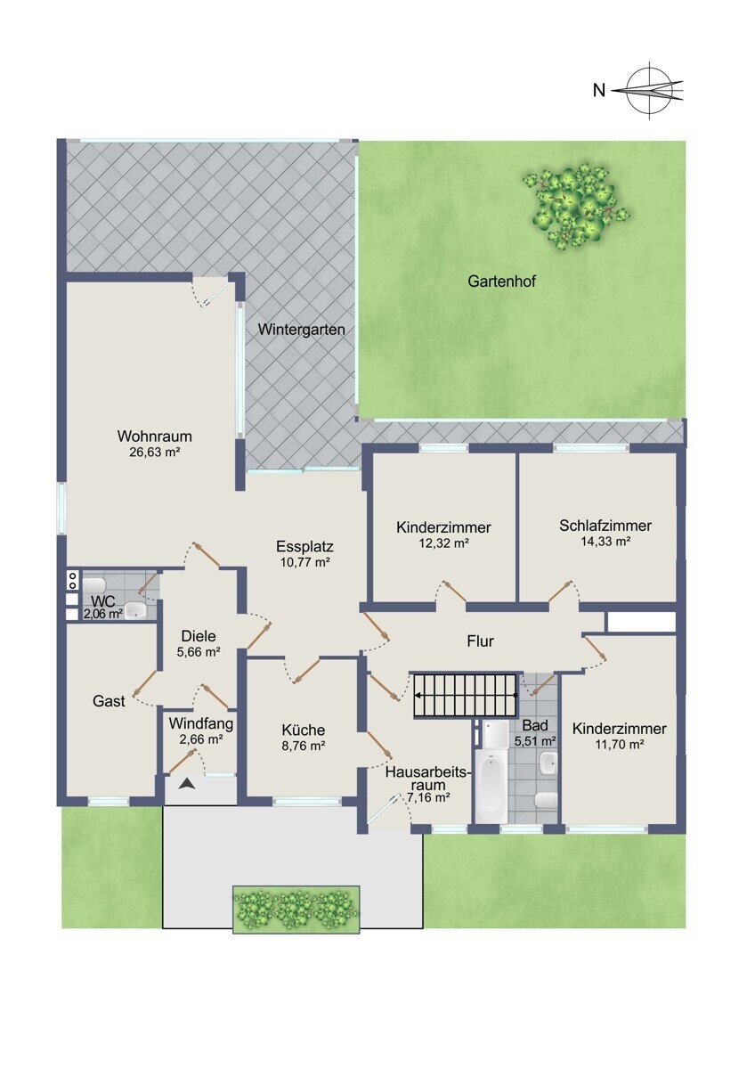 Der Garten stellt ein besonderes Highlight der Immobilie dar. Er bietet ausreichend Platz für Freizeit, Spiel und Erholung im Grünen. Ob gemütliche Grillabende, ein Spielbereich für Kinder oder die Gestaltung einer individuellen Gartenlandschaft – hier eröffnen sich zahlreiche Möglichkeiten zur persönlichen Entfaltung.