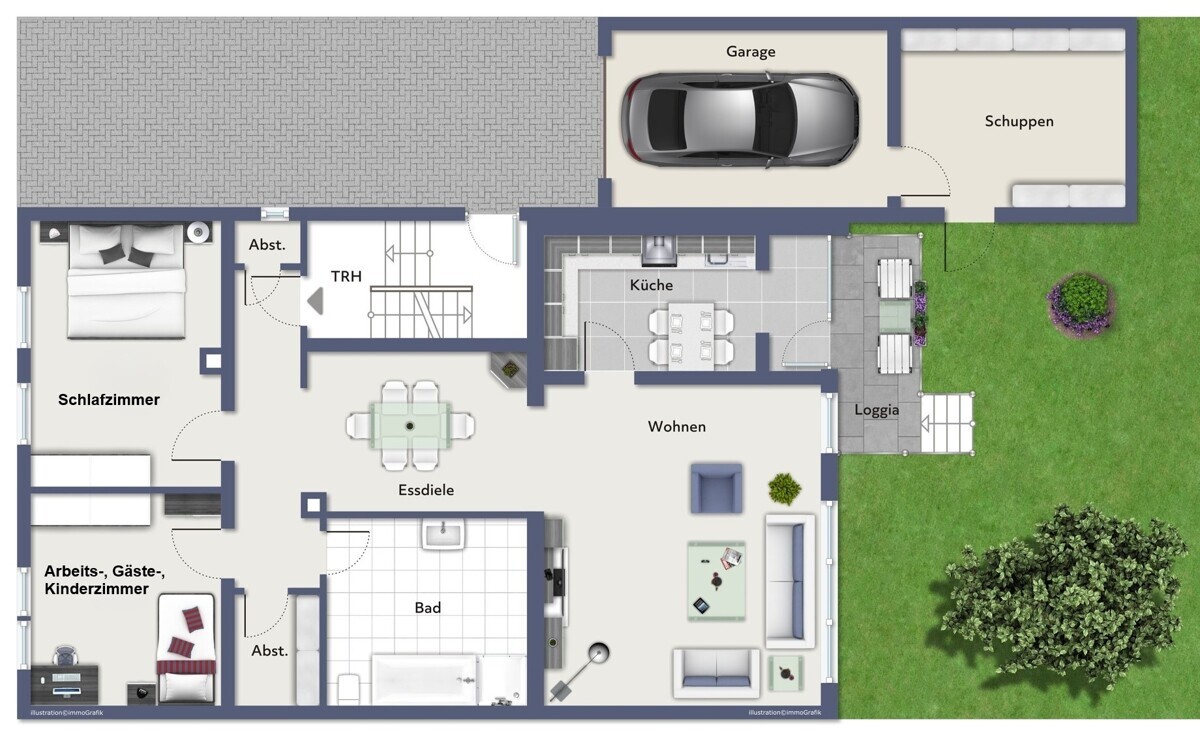 - Garage und zusätzlicher Abstellraum/Schuppen