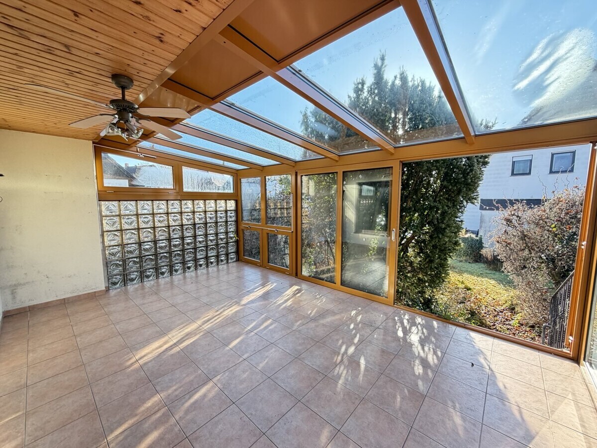 Gepflegtes Zweifamilienhaus mit großem Garten + Wintergarten und drei Garagen-Stellplätzen