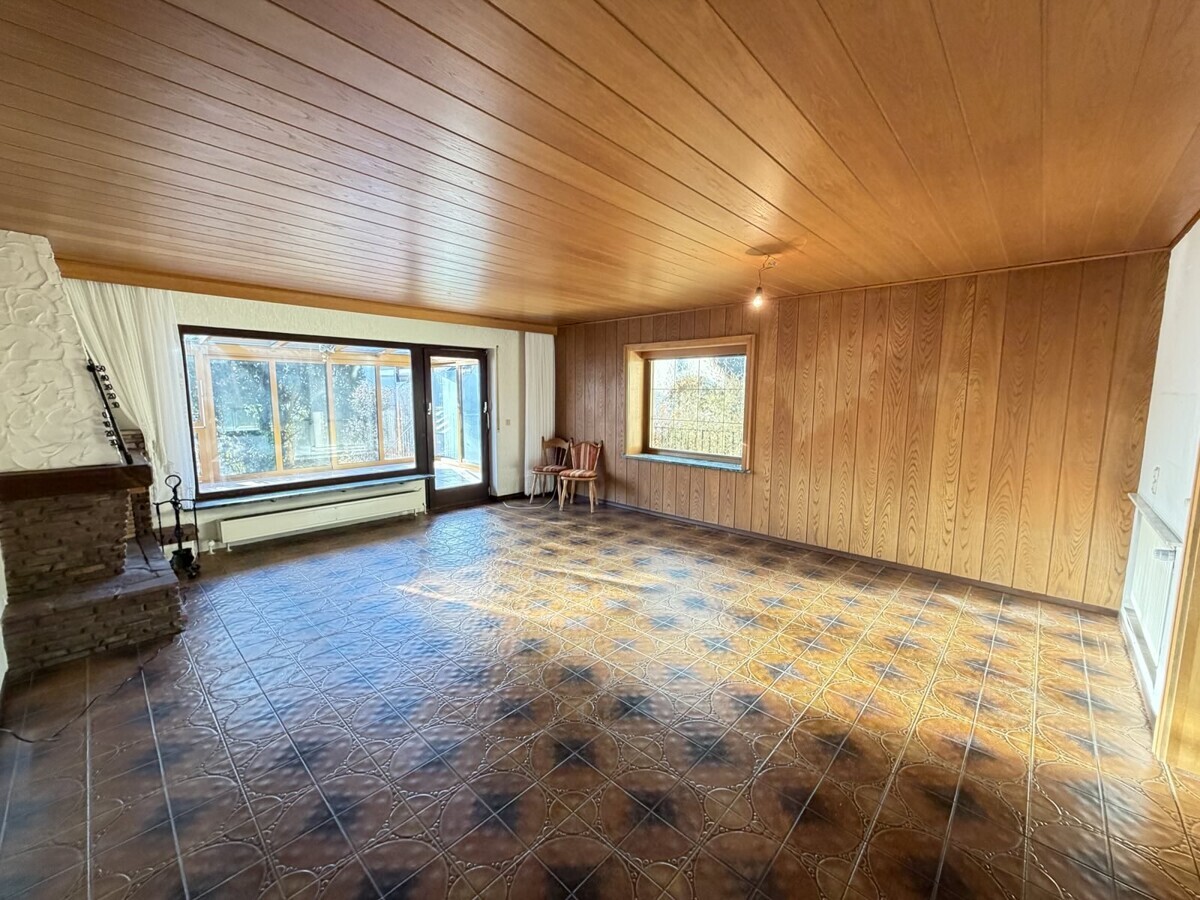 Die Erdgeschosswohnung verfügt über eine funktionale Raumaufteilung mit Wohnzimmer, Schlafzimmer, Arbeits-, Gäste-, Kinderzimmer Esszimmer, separater Küche sowie einem Badezimmer. Durch den Anbau im Jahr 1976 wurden das Wohnzimmer sowie der Balkon erweitert und eine großzügige Terrasse geschaffen. 2006 erfolgte der Anbau des Wintergartens. Vom Schlafzimmer und dem Wintergarten haben Sie ebenfalls Zugang zum Balkon. Im Wohnzimmer finden Sie eine offenen Kamin vor, der erst nach Umbauarbeiten wieder benutzt werden darf.