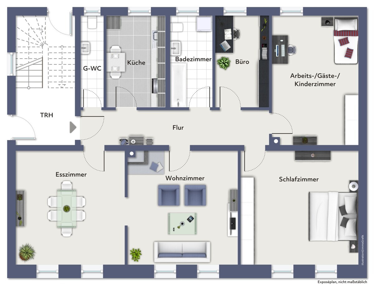 Die Wohnung überzeugt insgesamt durch ihre klare Struktur, hellen Räume und flexible Nutzungsmöglichkeiten ideal für Familien, Paare oder Personen mit Platzbedarf für Arbeiten und Wohnen unter einem Dach.