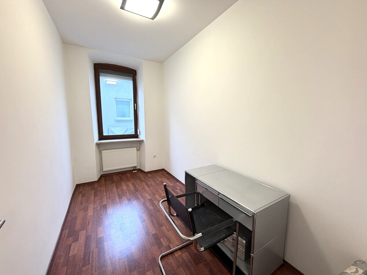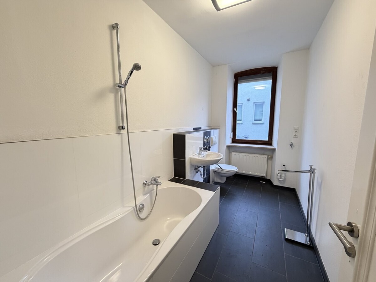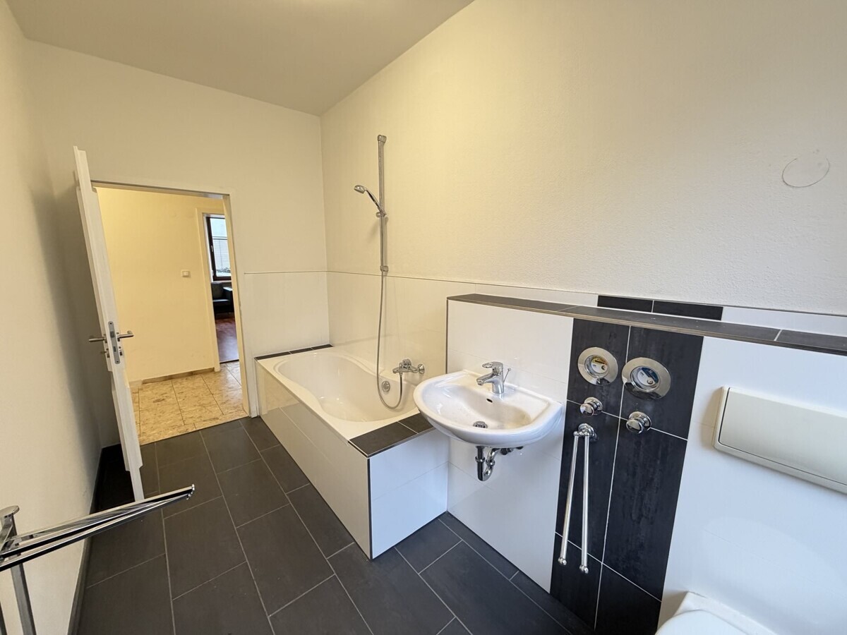 Gegenüber liegt das Badezimmer, das mit seiner klaren Aufteilung ideale Voraussetzungen für die tägliche Nutzung bietet. Ausgestattet mit Badewanne, Waschbecken, WC und einem Anschluss für die Waschmaschine. Direkt anschließend erreicht man das 8,36 m² große Arbeitszimmer, das sich perfekt für Homeoffice oder als Hobbyraum eignet.