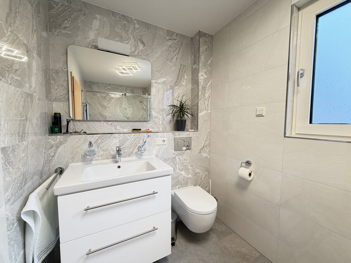Weitere Investitionen folgten 2024 mit dem Einbau eines Wasserfiltersystems sowie der hochwertigen Terrassenüberdachung inklusive Sonnenschutz und seitlicher Beschattung. Diese Erweiterung ermöglicht eine wetterunabhängige Nutzung der Terrasse und steigert den Wohn- und Freizeitwert. Zuletzt wurden im Jahr 2025 die Sanitäreinrichtungen des Gäste-WCs erneuert und damit der hohe Ausstattungsstandard konsequent fortgeführt.