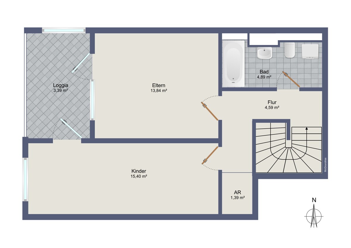 Diese helle und gut geschnittene Maisonette-Wohnung mit zwei Loggias befindet sich in Röthenbach an der Pegnitz, östlich von Nürnberg.